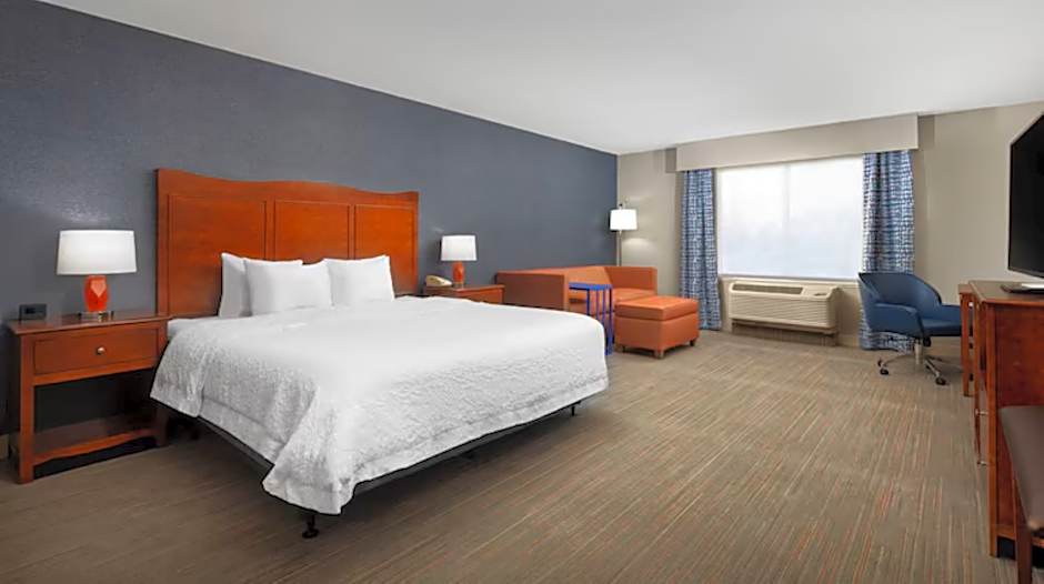 Sofa bed, free WiFi, 32-inch LCD TV, work desk, coffeemaker, shower Stretch out in this non-smoking guest room which features our clean and fresh Hampton king bed®, a convenient sofa bed, and a 32-inch LCD TV. Catch up on work at the large desk with ergonomic chair, or surf the web with free WiFi access. Refresh in the bathroom which has a WaterPik showerhead and curved shower rod that allows more light and space in the shower.